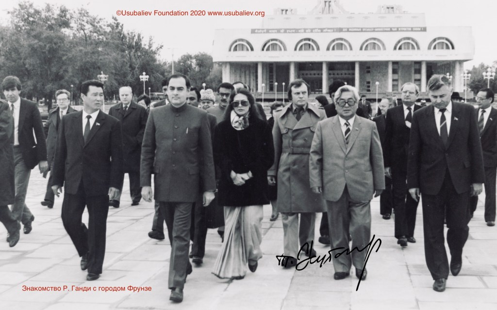 25 мая 1985 года автор этих строк, занимавший тогда пост первого секретаря ЦК Компартии Киргизии, в соответствии с протоколом принимал почетного гостя, провел с ним беседу в ЦК Компартии Киргизии. Я еще раз горячо и сердечно приветствовал премьер-министра. Индии и сопровождающих его индийских государственных деятелей.