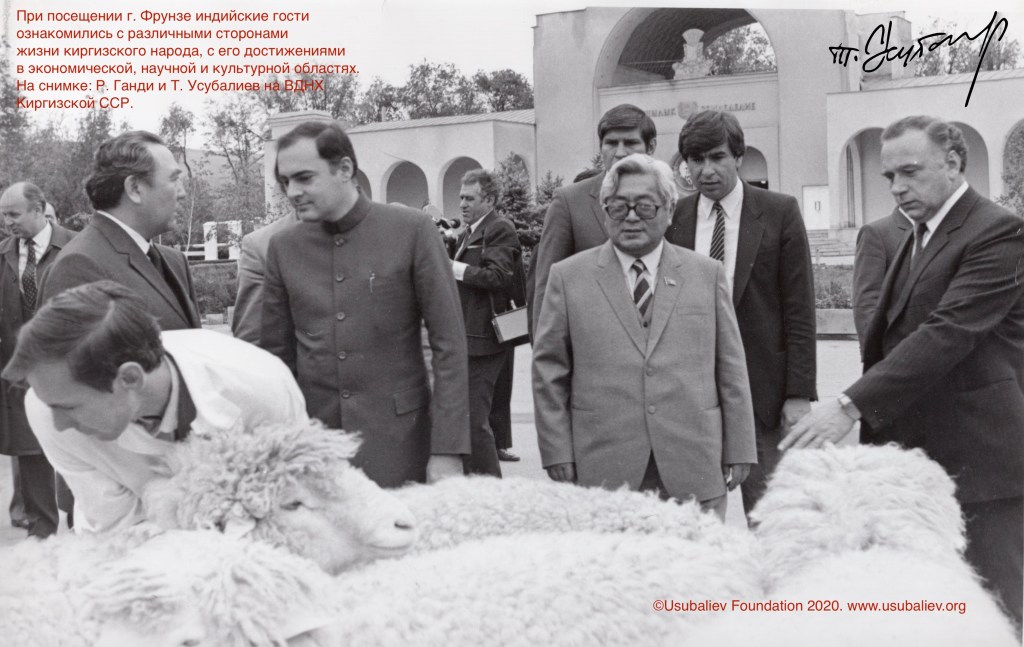 Премьер-министр Республики .Индии Раджив Ганди, выразив искреннюю благодарность за радушный прием, передал от имени индийского народа теплые приветствия киргизскому народу: