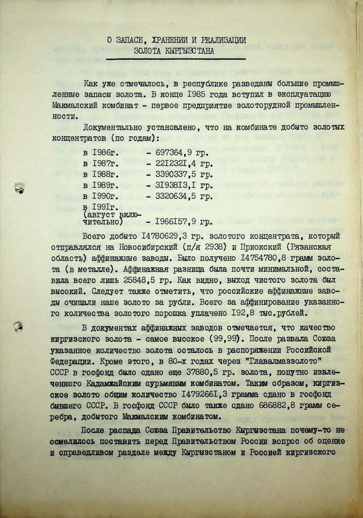 Как уже отмечалось, в республике разведаны большие промышленные запасы золота. В конце 1985 года вступил в эксплуатацию Макмальский камбинат — первое предприятие золоторудной промышленности.