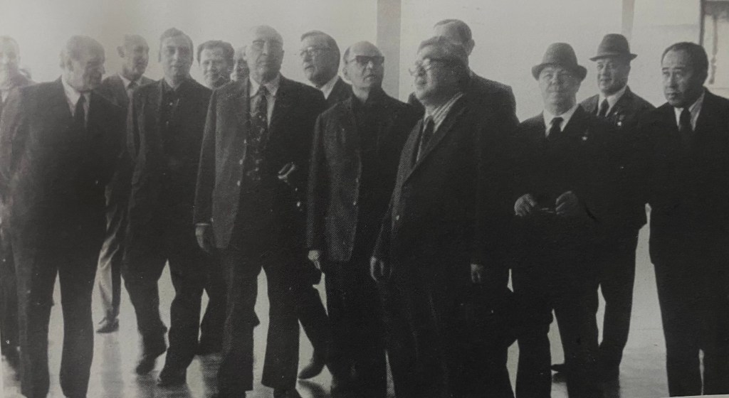1975 год. Открытие санатория «Киргизское взморье». На снимке: министр среднего машиностроения СССР Е.П. Славский, первый секретарь ЦК КП Киргизской ССР Т.У. Усубалиев.