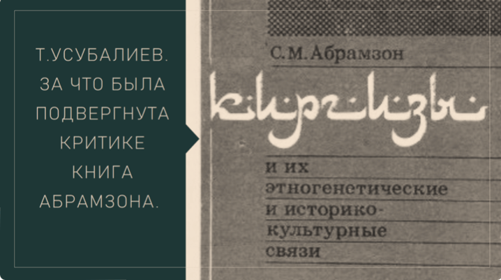 Такие ведущие историки Киргизии, как академик АН Киргизской ССР С. И. Ильясов, член-корреспондент АН Киргизской ССР А. Г. Зима и другие глубоко проанализировали книгу профессора Абрамзона. Они отметили достоинство и недостатки этого труда. Здесь я отсылаю читателей к их статье «Оценивать прошлое с партийных позиций. О некоторых ошибках в освещении истории и этнографии киргизского народа», опубликованную в газете «Советская Киргизия» 28 февраля 1973 года. В статье говорится, что «монография С. М. Абрамзона, несомненно, представляет собой большое исследование… Книга написана с большим знанием литературы и материала…». Жаль только, что были допущены серьезные методологические и идейно-политические ошибки».